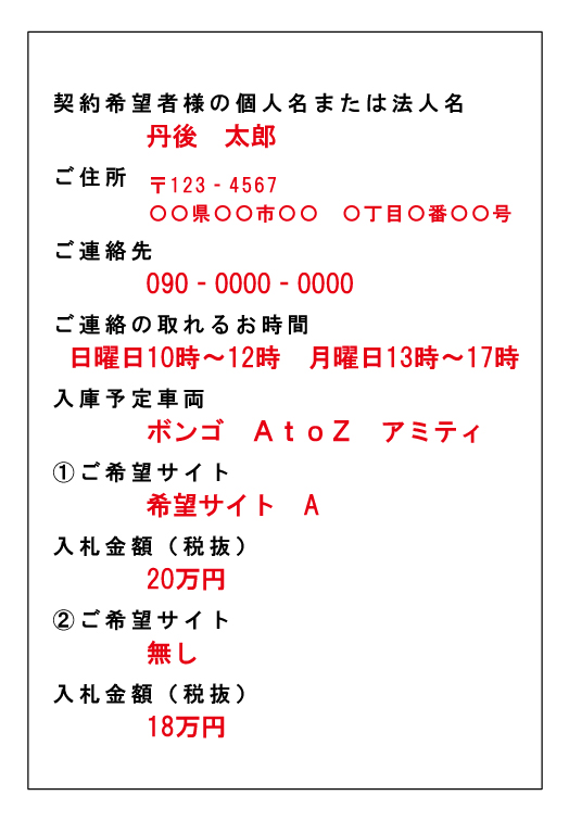 サイトA~Eの希望あり・希望なしの複数入札可能です。